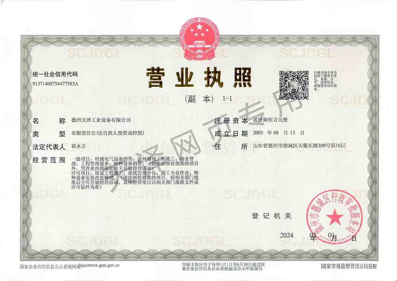 德州天澤工業(yè)設(shè)備有限公司成立于2003年(前身為德州天元集團(tuán)天明工業(yè)設(shè)備安裝公司),經(jīng)過20多年的發(fā)展,現(xiàn)成長(zhǎng)為擁有職工600余人,各類專業(yè)技術(shù)人員近300余人,年生產(chǎn)能力兩億元以上,以建筑機(jī)電安裝工程、消防設(shè)施安裝工程施工為主,集建筑工程施工、市政工程施工、建筑智能化工程施工、園林綠化工程施工、工程管理服務(wù)、物業(yè)管理、電氣機(jī)械設(shè)備銷售等多元化經(jīng)營于一體的綜合型企業(yè)。2005年,企業(yè)按照國際標(biāo)準(zhǔn)建立的質(zhì)量管理體系,通過了ISO質(zhì)量管理體系認(rèn)證、環(huán)境管理體系認(rèn)證、職業(yè)健康安全管理體系認(rèn)證。施工工程遍布山東、河北、四川、江蘇等地,最具代表性的工程有:山東省德州市百腦匯資訊廣場(chǎng)機(jī)電安裝工程、德州經(jīng)濟(jì)開發(fā)區(qū)天元大廈機(jī)電安裝工程、陵城區(qū)人民醫(yī)院機(jī)電安裝工程、德州金魯班大廈機(jī)電安裝工程、河北故城金辰小區(qū)機(jī)電安裝工程、北川地震災(zāi)后援建工程等。多年來,公司始終堅(jiān)持“以人為本,建精品工程,創(chuàng)行業(yè)品牌”的經(jīng)營理念,先后榮獲省(市)級(jí)泰山杯、天府杯、魯安杯等獎(jiǎng)項(xiàng),申報(bào)各種功法、多項(xiàng)專利。